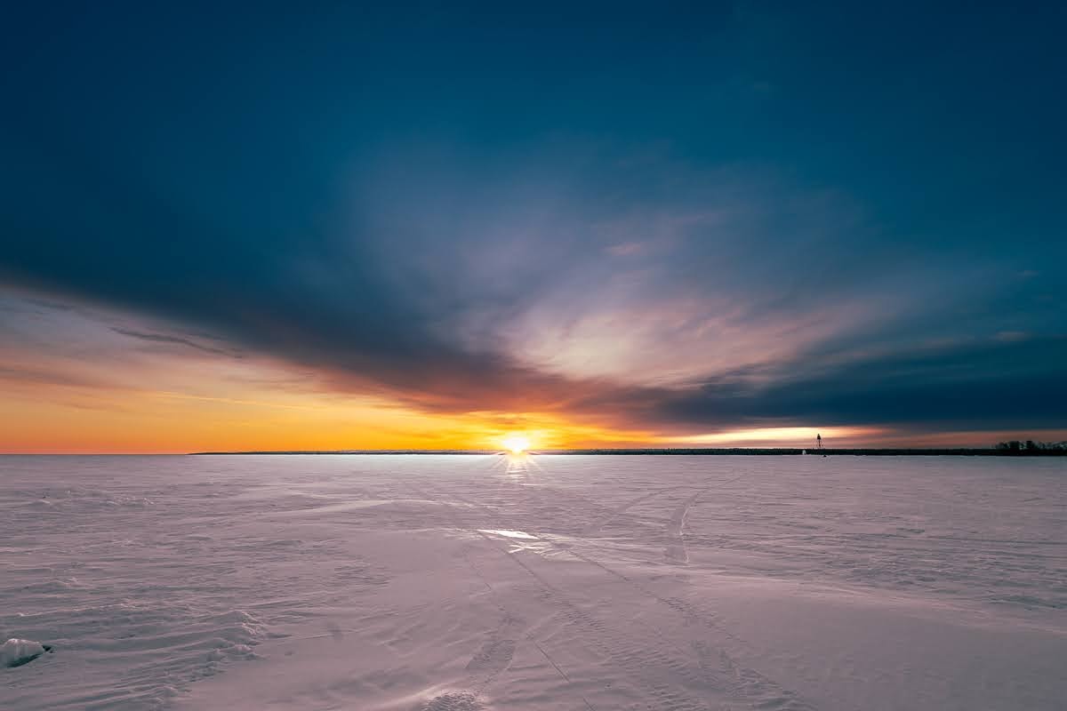 In that next one, I continued my walk over the snow covering lake Winnipeg and took this closer shot of the lighthouse as the sun continues it’s slow rise over the horizon.