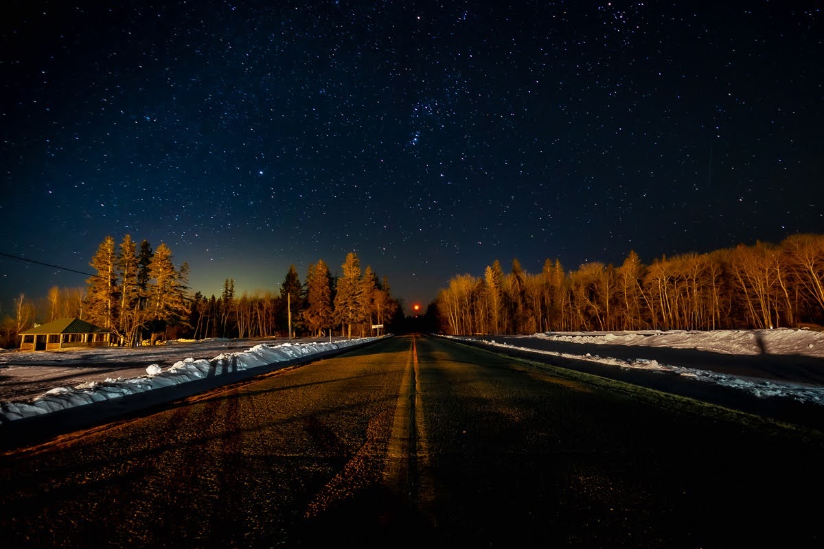 At night, the sky was clear again and the sky was filled with so many stars, night photography was something I had very little experience with then but I decided it was the perfect occasion to gain some. I took that stary sky above the forest ridge. which is a pretty cool panorama and another one of the road out of the harbor.